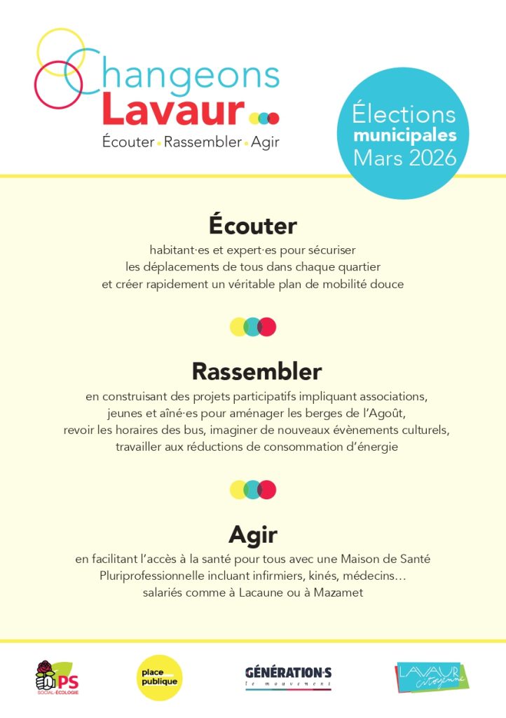 Tract distribué samedi 10 janvierPar Changeons Lavaur / 10 janvier 2026 Notre équipe était réunie ce matin pour venir à votre rencontre sur le marché de Lavaur. La pluie et le froid étaient de la partie. Merci beaucoup pour votre accueil !